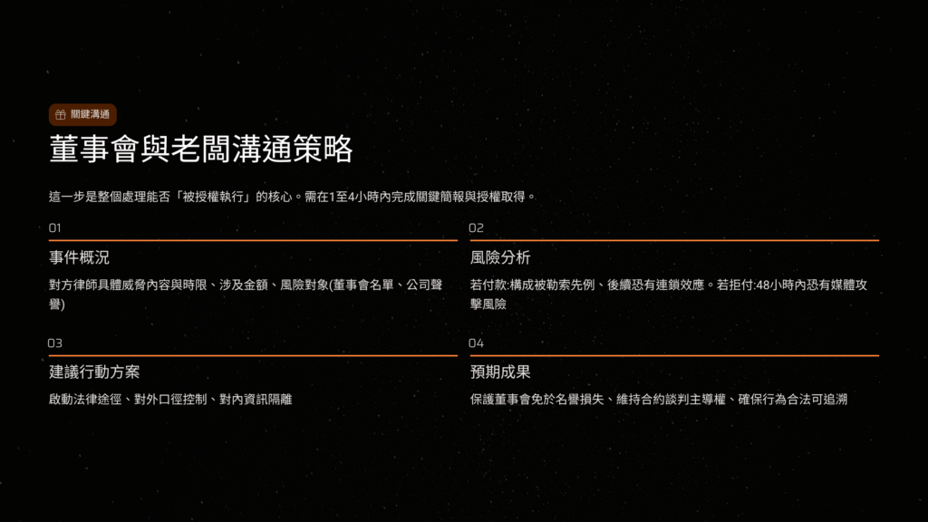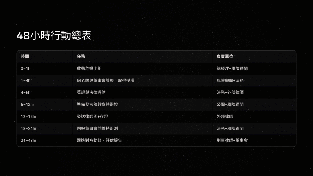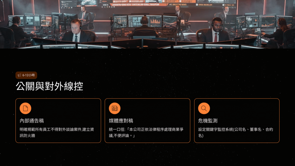 2 月62026危機處理行動指南 歡迎分享本篇文章分類: 危機處理行動指南By Hans2026-02-06留言Post navigation上一篇上一篇文章:ep444.當兒子被指控在學校長期霸凌同學,我該怎麼處理?(3)下一篇下一篇文章:ep445.當兒子被指控在學校長期霸凌同學,我該怎麼處理?(4)相關文章危機處理行動指南Case.19 – 集團要裁員一半的準備方案2026-04-06危機處理行動指南Case.18 – 原物料斷貨的處理方案2026-03-30危機處理行動指南Case.17 – 公司發生暴力事件的處理方案2026-03-25