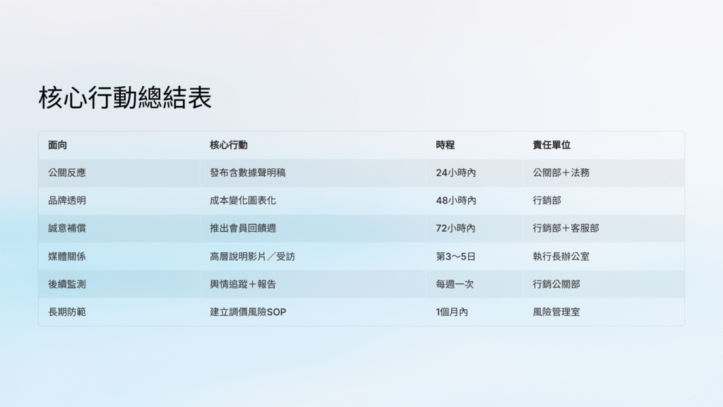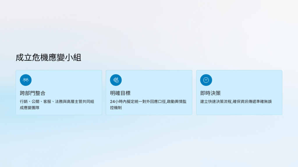 2 月112026危機處理行動指南 歡迎分享本篇文章分類: 危機處理行動指南By Hans2026-02-11留言Post navigation上一篇上一篇文章:ep445.當兒子被指控在學校長期霸凌同學,我該怎麼處理?(4)下一篇下一篇文章:ep446.兒子再度被指控打同一位同學,我該怎麼處理?相關文章危機處理行動指南Case.19 – 集團要裁員一半的準備方案2026-04-06危機處理行動指南Case.18 – 原物料斷貨的處理方案2026-03-30危機處理行動指南Case.17 – 公司發生暴力事件的處理方案2026-03-25
