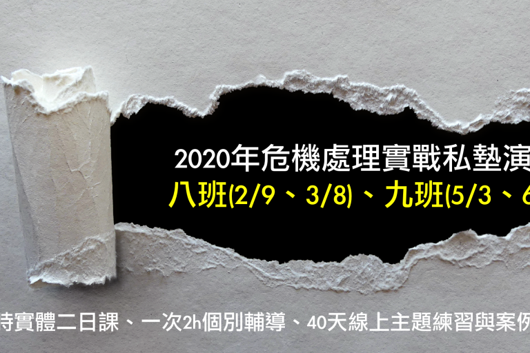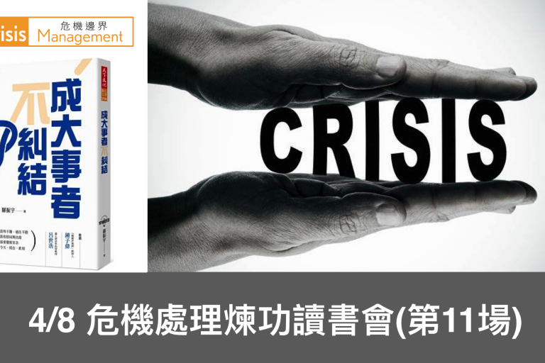 危機處理煉功讀書會第12場(本活動採審核制) 報名截止日:2019.4.22晚上12時 審核公告日:2019.…