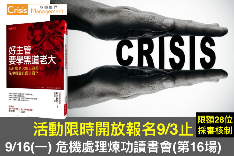 危機處理煉功讀書會第16場(本活動採審核制) 報名截止日:2019.9.3晚上12時 審核公告日:2019.9…