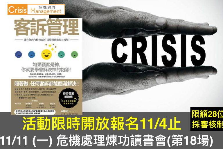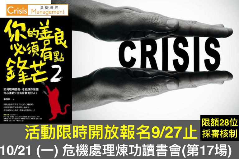 危機處理煉功讀書會第17場(本活動採審核制) 報名截止日:2019.927晚上12時 審核公告日:2019.9…