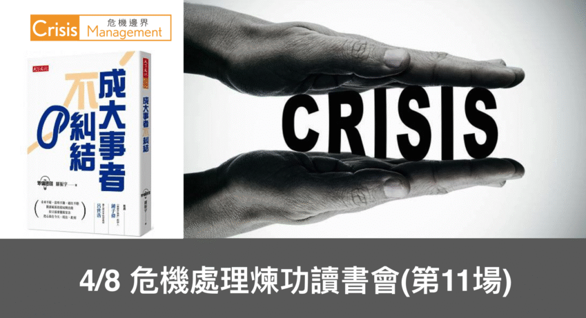 4/8(一)危機處理煉功讀書會第11場:顧大局心法<成大事者不糾結>(3/26截止報名,限額28位) 2019-03-25 掌握職場潛規則! (本活動採審核制) 過去的輝煌或遺憾,現在的順遂或艱難,未來的期待或茫然,都是阻礙成功的妄念… 繼續閱讀