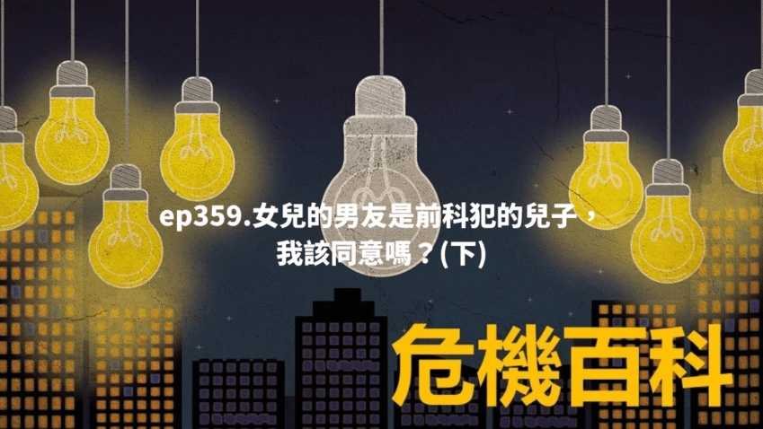 ep359.女兒的男友是前科犯的兒子,我該同意嗎?(下) 2025-04-28 歡迎收聽第359集的Podcast! 好不容易安撫好客戶的情緒,但接下來我還是得跟年輕人說他們會遇到什麼問題,… 繼續閱讀