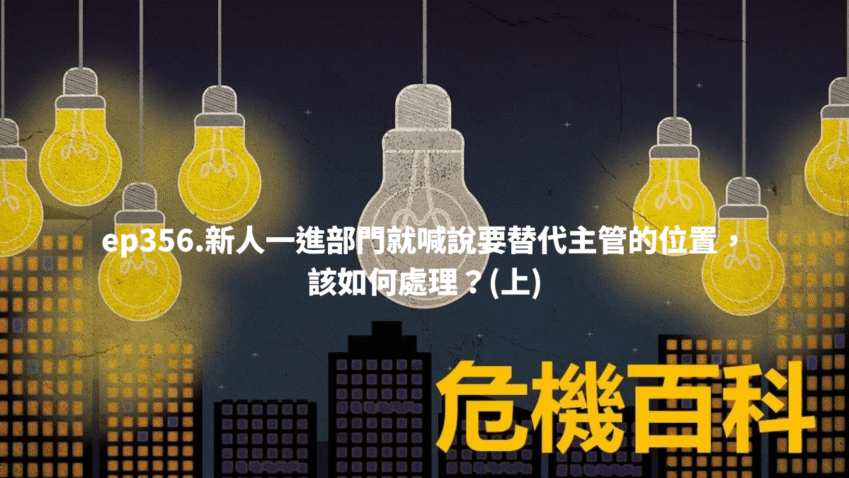 ep356.新人一進部門就喊說要替代主管的位置,該如何處理?(上) 2025-04-24 歡迎收聽第356集的Podcast! 新人一進部門就說要替代主管的位置,而且完全的不服從主管的指揮,該如何處理… 繼續閱讀