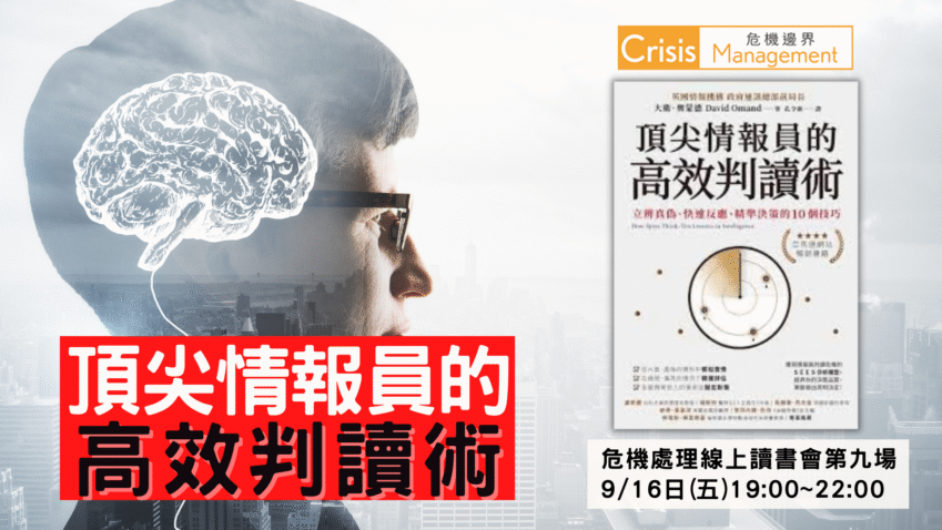9/16(五)危機處理線上讀書會第九場:頂尖情報員的高效判讀術 2022-07-29 本場為收費活動,線上舉辦,線上報名與繳費請按此。(建議先在課程網站註冊會員,再報名課程) 我非常愛看一部諜報電… 繼續閱讀