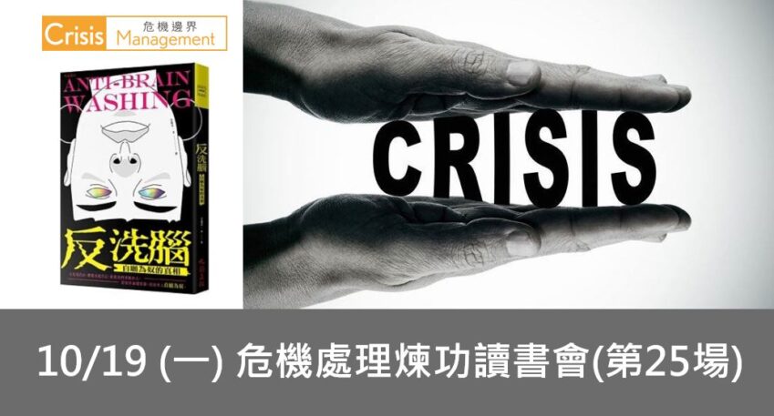 10/19危機處理煉功讀書會第25場:反洗腦 :自願為奴的真相(本活動匯款報名,限額20位,額滿截止) 2020-09-21 危機處理煉功讀書會第25場(本活動採匯款報名)活動時間:2020.10.19 晚上7~9:30報名截止日:本活… 繼續閱讀
