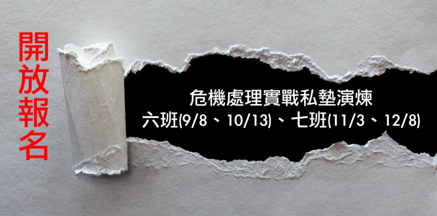 危機處理實戰私墊演煉六班(9/8、10/13)、七班(11/3、12/8)開放報名 2019-08-08 如果你人在中國的機場,錢包證件全部遺失,上不了飛機,進不了飯店,你這個時候要怎麼辦? 如果你的媽媽當著岳母的面… 繼續閱讀